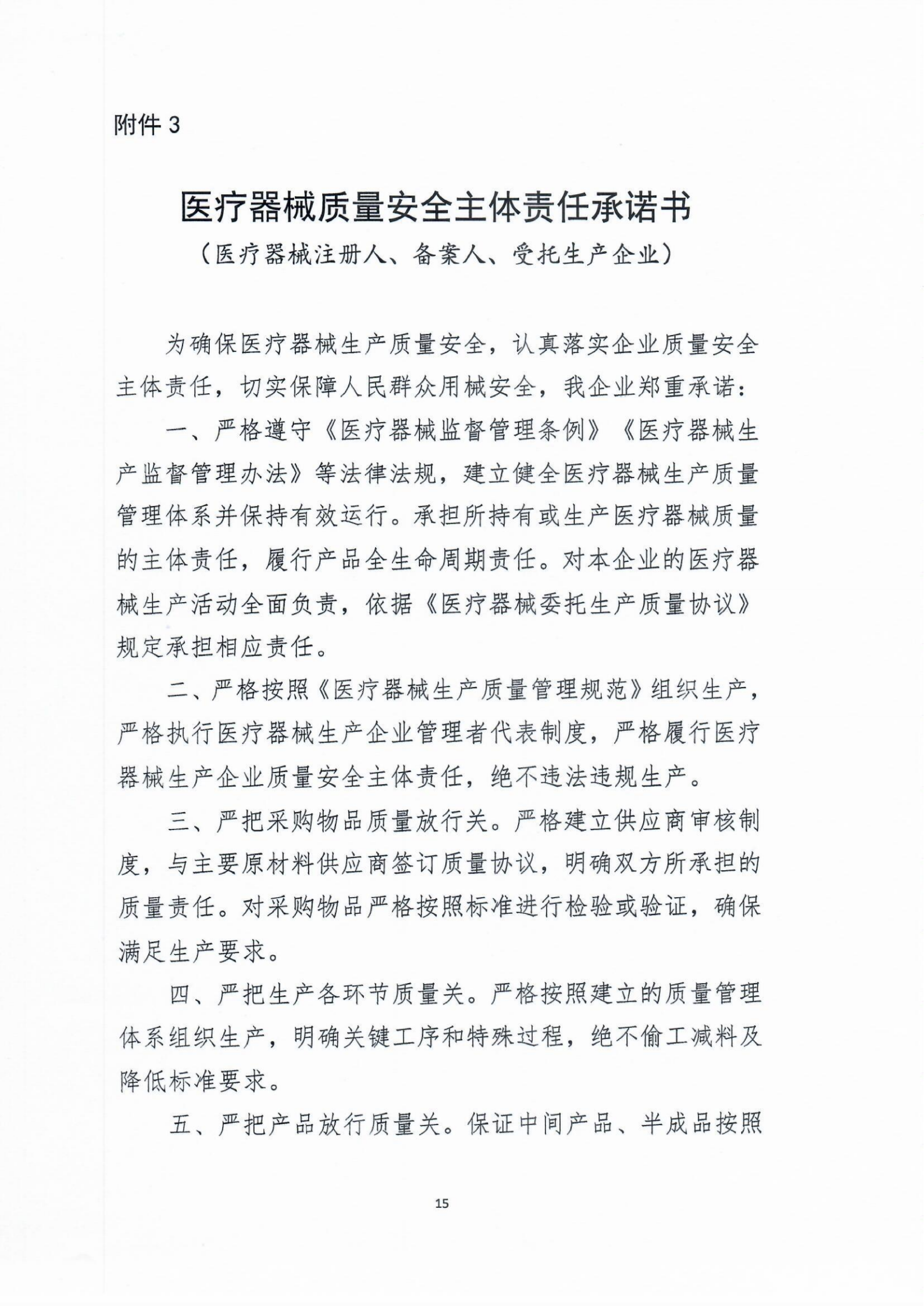 醫療器械質量安全主體責任承諾書