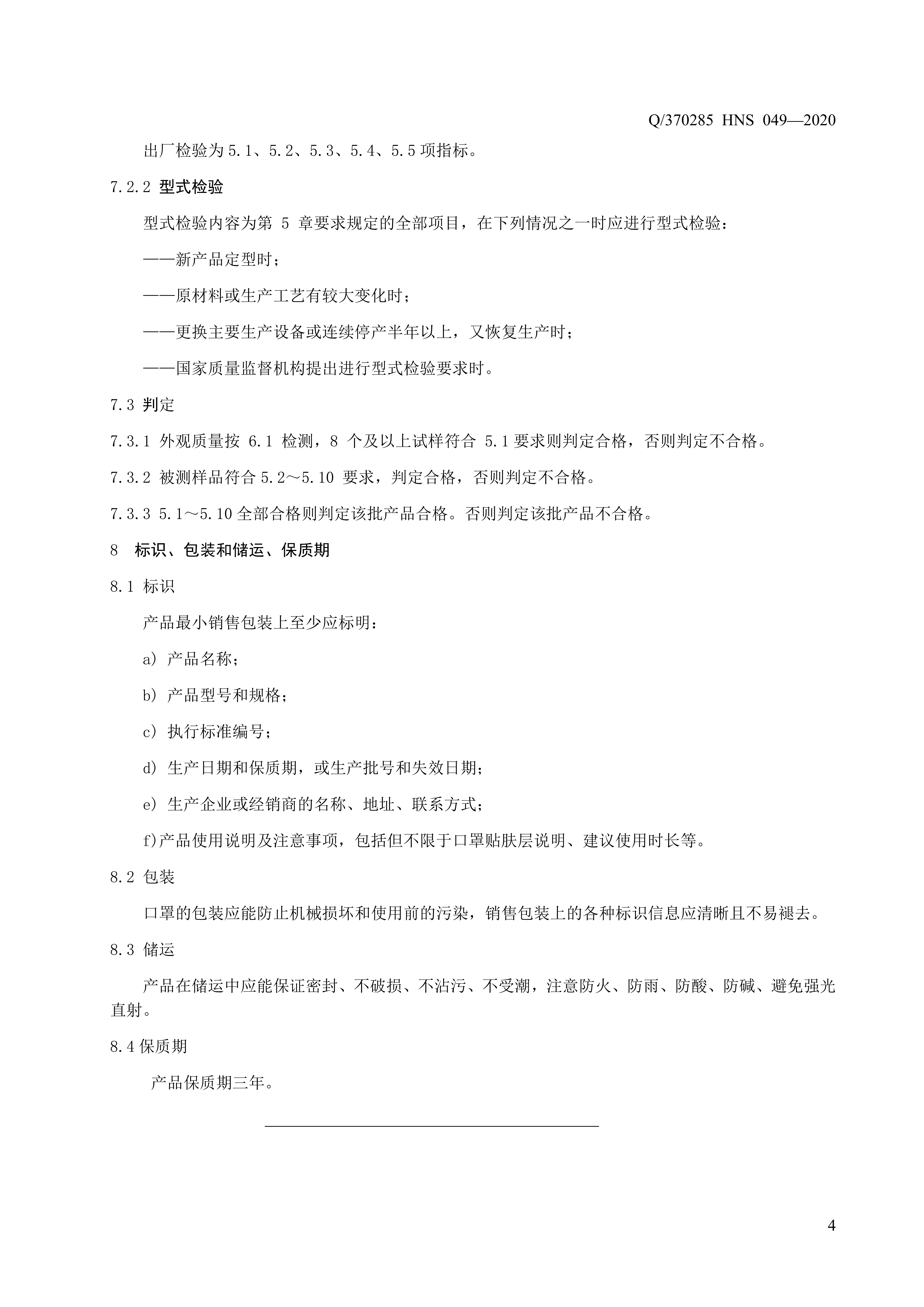 青島海諾生物工程有限公司企業標準 — 一次性板藍根口罩