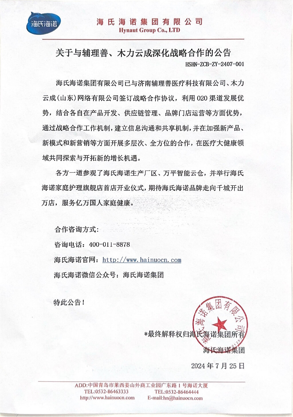關(guān)于與輔理善、木力云成深化戰(zhàn)略合作的公告